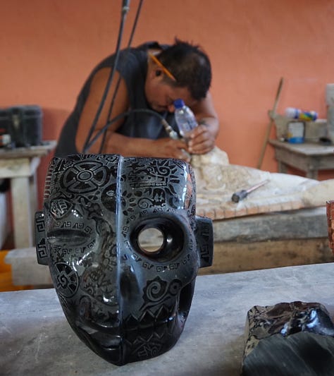 my tour guide was excellent, part mayan himself, he was passionate about the culture and educating people about the intelligence and richness of his ancestors. we stopped at a small mayan community where we had a shaman bless us, watched a man carve a sculpture out of a huge stone, and ate handmade tortillas and pork smoked in an underground pib “earth oven” . (i didn’t eat the pork but they made the best pico i’ve ever had!)